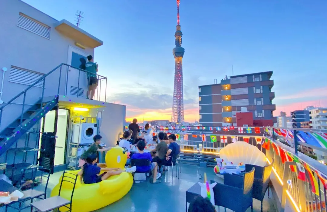 公寓还提供大厨房,包括所有必要的厨具。 Skytree車站徒步5分 Tokyo東京夜景 機場直達 帶廚房 洗衣機 有電梯4距离东京晴空塔火车站只有5分钟的路程。 这里有城市景的露台。